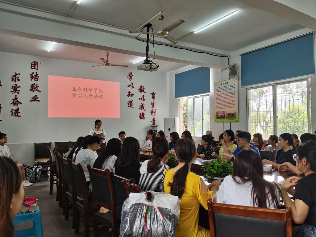 入党誓词代表着中国共产党的行动指南,是共产党人的座右铭,不断重温,终身践行,前进路上,对照承诺,时时反省自我,不断校正方向,方能行稳致远。本次活动由生科学院学生党员赵子璇主持,生科学院全体学生党员72名同志参加,赵子璇同志带领全体党员面对鲜红的党旗,重温入党誓词:“我志愿加入中国共产党,拥护党的纲领,遵守党的章程……”。庄严肃穆的重温入党誓词活动,使每一位党员干部再一次接受心灵的洗礼,进一步坚定了立场信念。整个活动中,全体党员同志也进一步认识了“两学一做”学习教育的精神内涵,大家纷纷表示,一定要牢记入党誓言,履行党的使命,积极发挥先锋模范作用,做一名“让党放心、让人民满意”的合格党员。